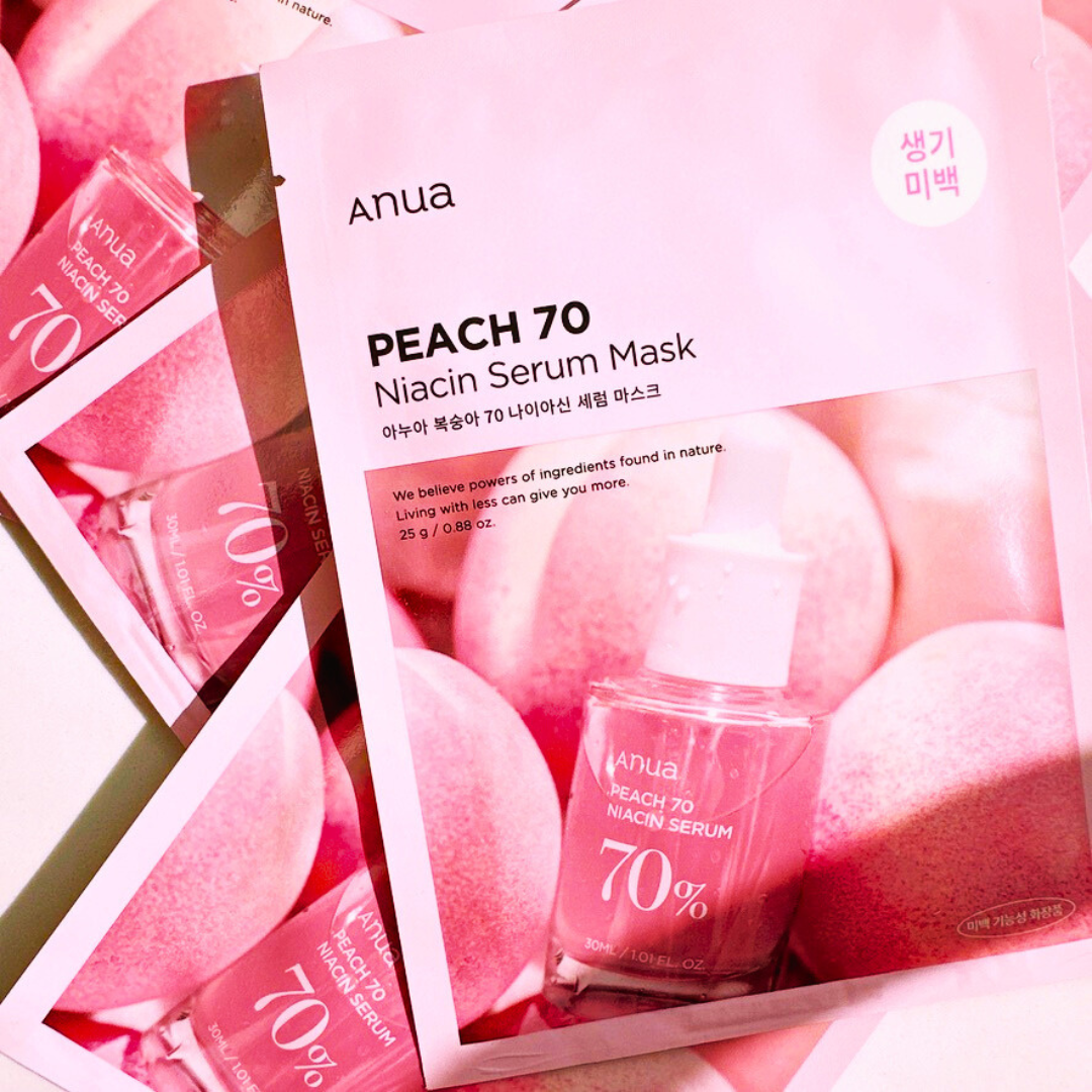 Peach 70 Niacin Serum MaskRich with peach extract, this brightening serum mask will get your skin glowing.