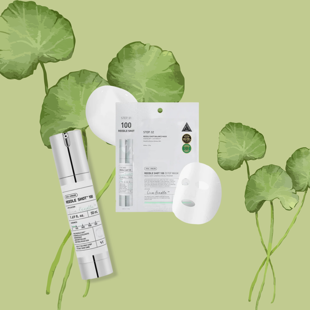 Enjoy the benefits of the Cica Reedle Shot 100 essence and a hydrating mask in one, infused with Centella Asiatica, Ceramides, Collagen, and Tea Tree in this skin regenerating 2 step mask. Gently exfoliates, minimizes pores, and provides a smooth glowing complexion with Cica Reedles that boost absorption of nutrients allowing for increased cellular turnover.