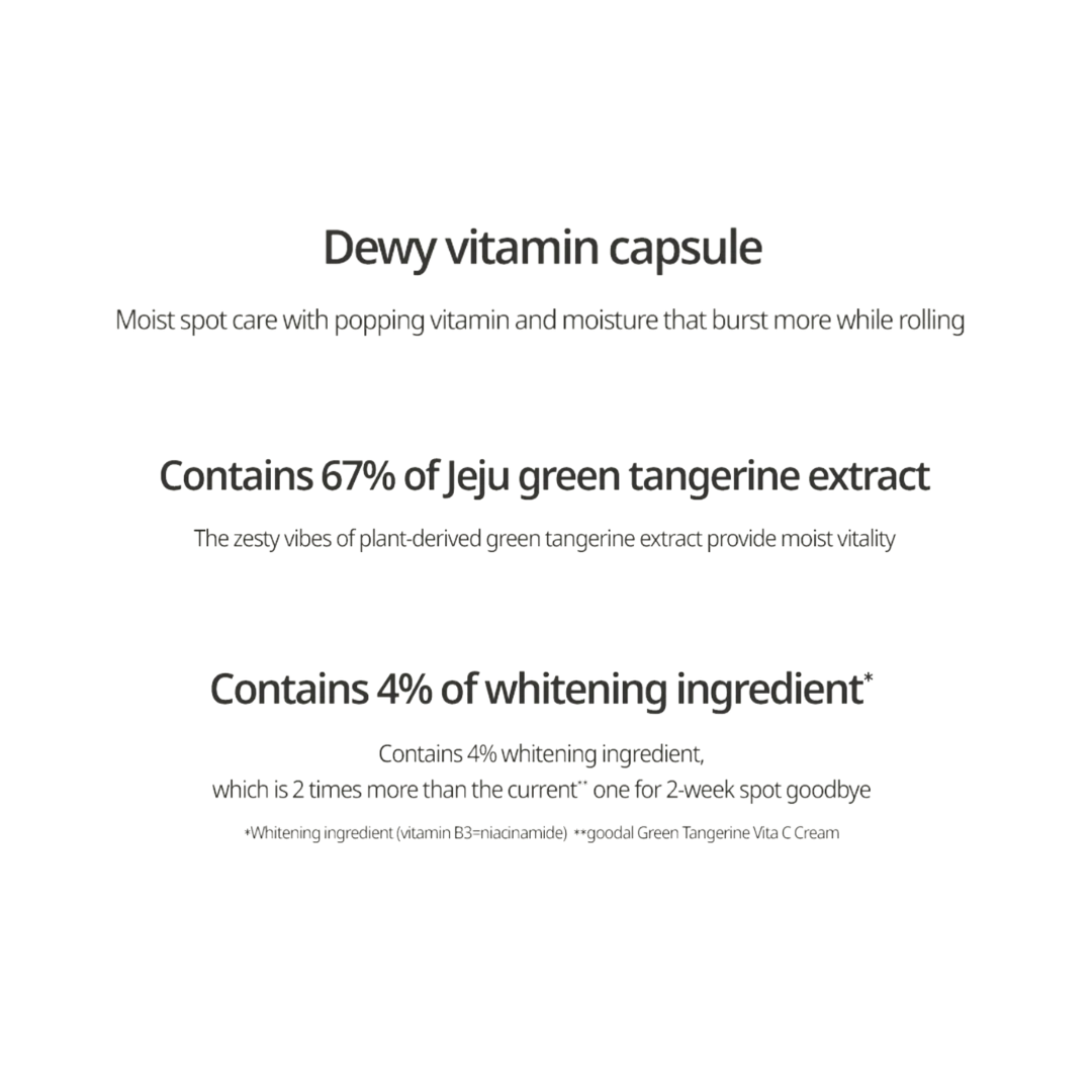 This moisturizing and brightening cream uses Vita Capsules containing refreshing Vitamin C derivatives that pop out moisture and vitamins over your skin. Vita-C Dark Spot Care Cream uses organic, safe, and pesticide free green tangerines that help hydrate, manage blemishes, and lighten dark spots over time. The tiny capsules of nutrients disappear as they absorb into your skin, giving you a noticeably dewy and brighter complexion. This zesty cream contains 67% of Jeju Green Tangerine Extract and 4% Niacinamide.